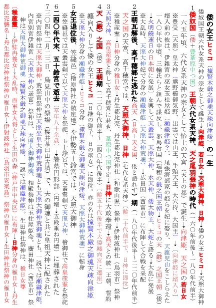 天照大御神がヒミコに転身、大乱勃発が伊奘諾期の一八〇年代だと多角的に立証した上で、真の王系譜と史実に迫る道のりを順序立てて綴りました。